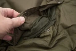 Fermeture Ă©clair sur le cĂŽtĂ© gauche du sac de couchage avec zip double curseur, permettant de lâouvrir par le bas ou le haut. La construction trapĂ©zoĂŻdale pour plus de confort au niveau des pieds.