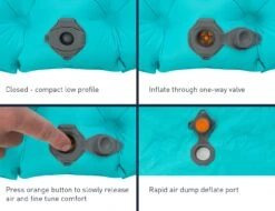 Au niveau de la tête, l’attache PillowLock permet de fixer un oreiller Aeros Sea to Summit à votre matelas pour le tenir en place toute la nuit. (Oreiller vendu séparément).