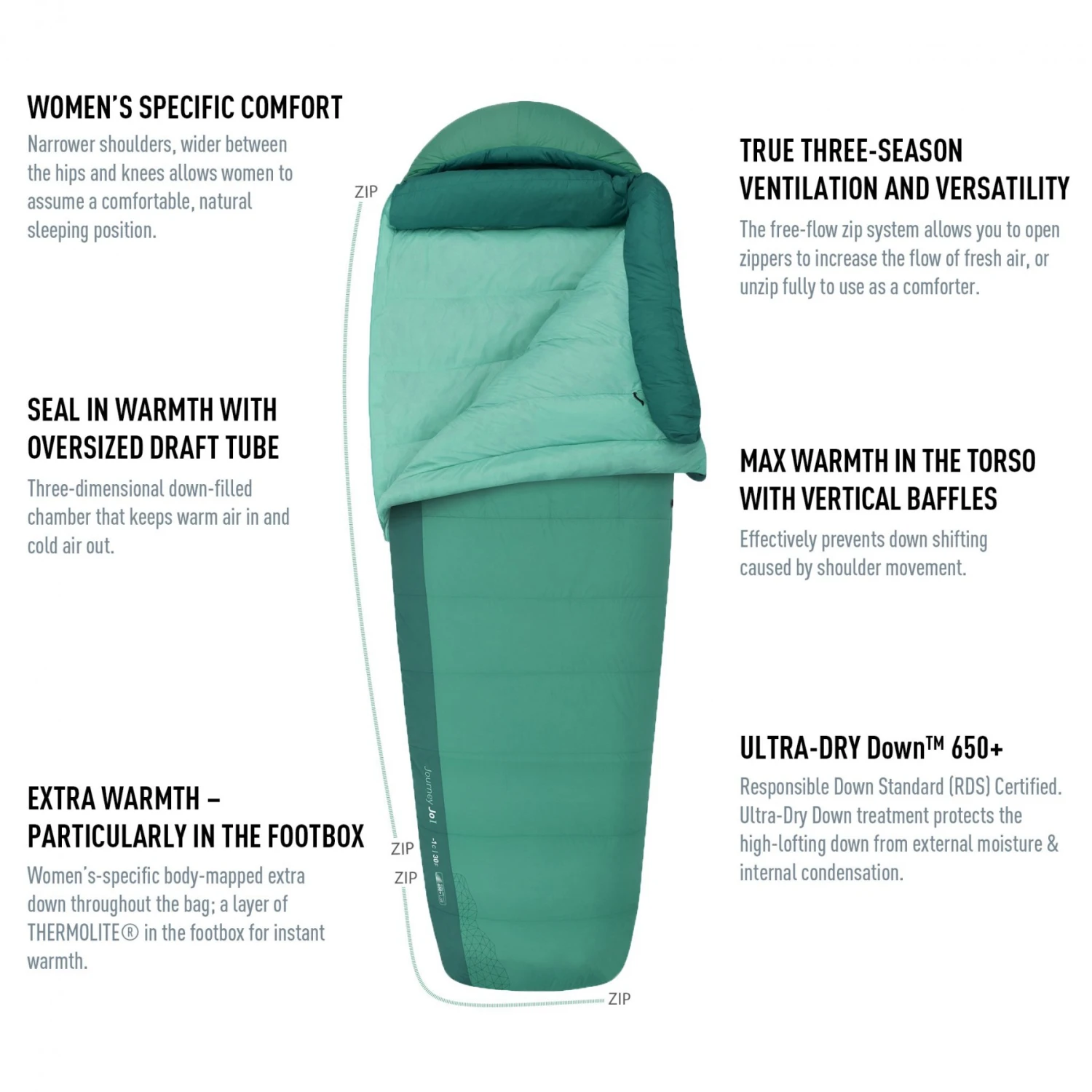 Le Journey JOI de Sea to Summit est un sac de couchage conçu pour apporter aux femmes du confort et de la chaleur. Forme rectangulaire offrant plus d’espace et de confort qu’un sac de couchage traditionnel. Grâce à sa forme, vous ne serez plus à l’étroit et vous pourrez bouger durant la nuit.