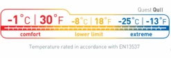 Le Quest QuII dispose d’une fermeture éclair YKKK #5 sur toute la longueur du sac, ce qui vous permet de l’utiliser comme une couette, par temps chaud. Une deuxième fermeture éclair au niveau des pieds vous permettra de gérer la ventilation.